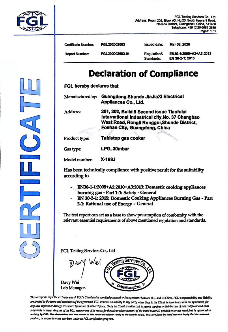 Сертификат FGL